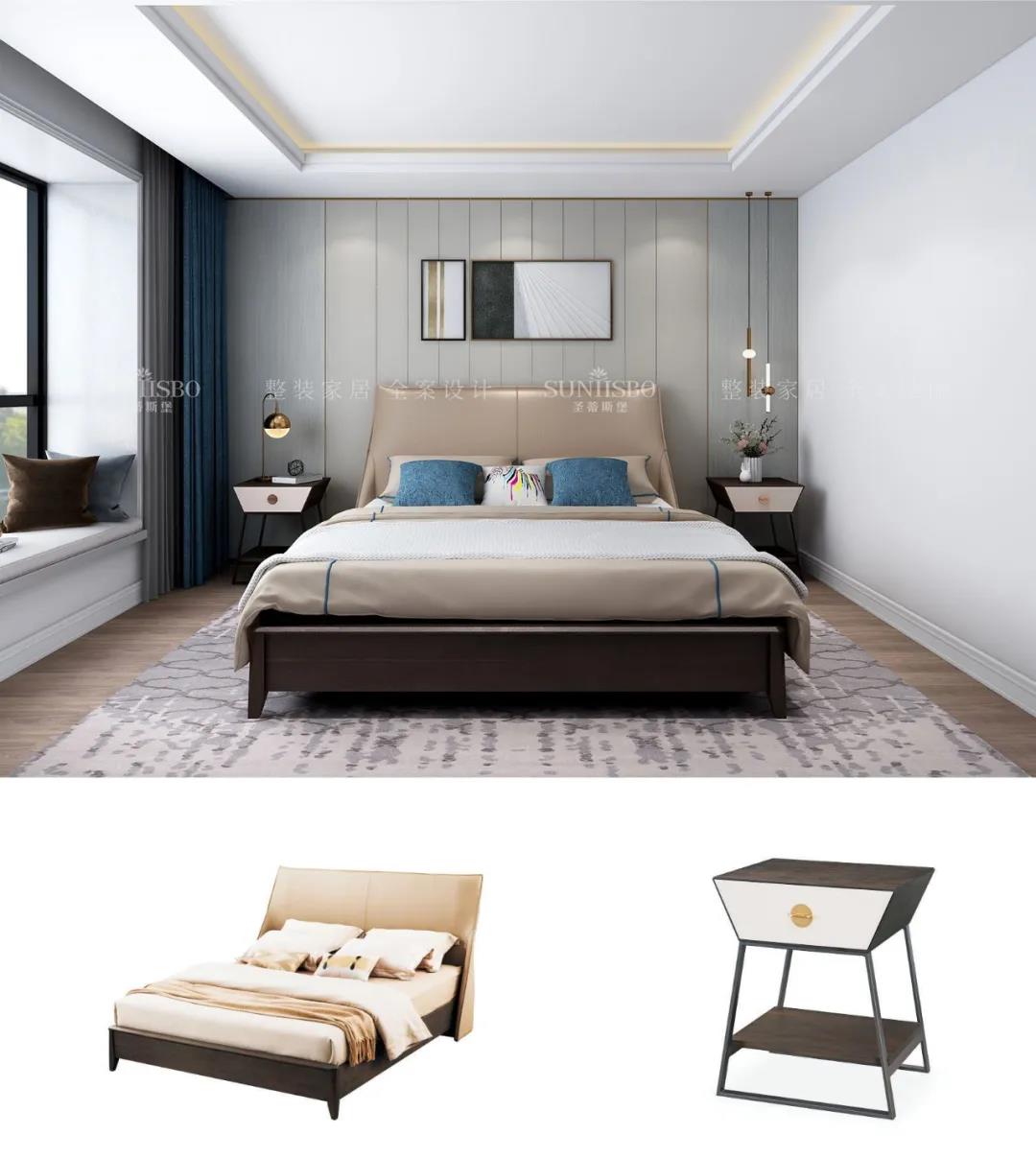 設計師運用最為百搭淺灰實(shí)木護墻板打造主臥空間,簡(jiǎn)約的線(xiàn)條縱橫交錯,帶來(lái)了干凈、清爽、舒適的視覺(jué)效果。明暗分區的衣柜在燈光的渲染下,虛實(shí)光影變換其中,為每個(gè)角落氤氳出浪漫的氣息。