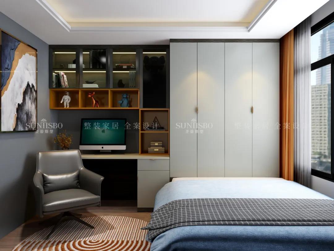 沿用主臥相同的顏色,能很大限度的調節人的情緒。這種時(shí)尚不顯棱露角,卻能在舒適中徹底征服你。